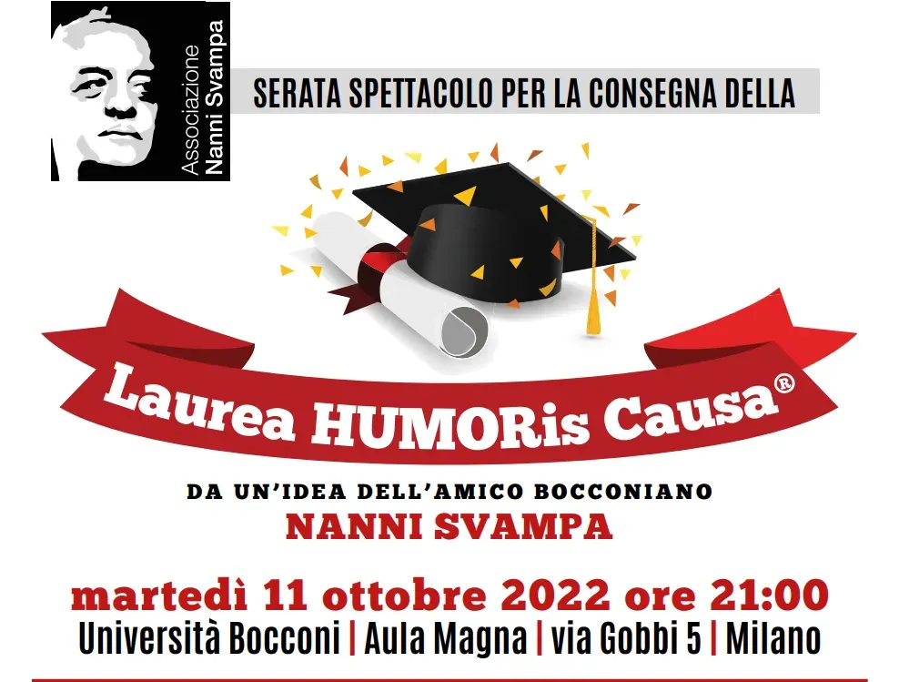 Nell'Aula Magna dell'Università Bocconi di Milano, con grande partecipazione di pubblico è stata conferita la prima Laurea HUMORis Causa, secondo il progetto originario di Nanni Svampa.
